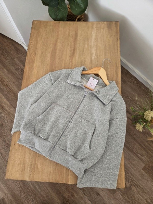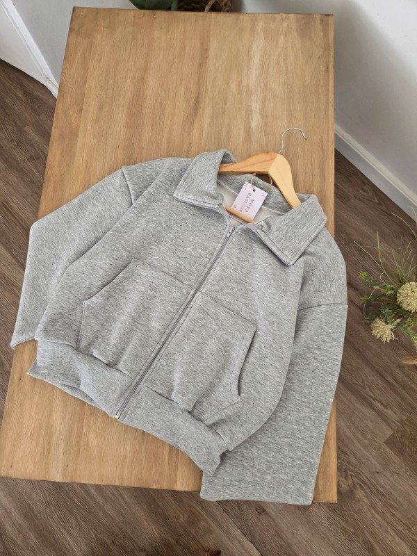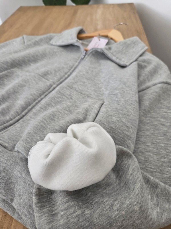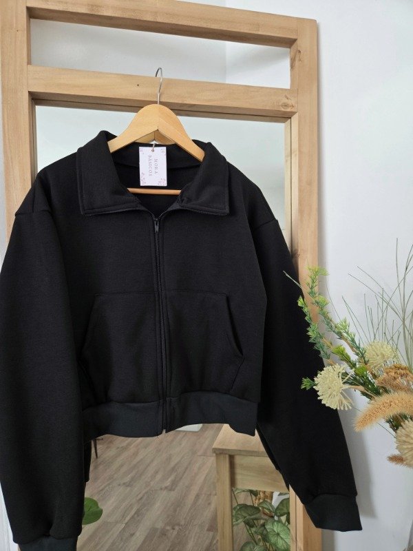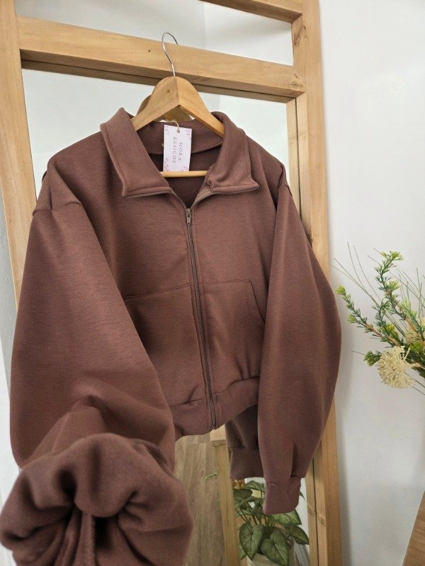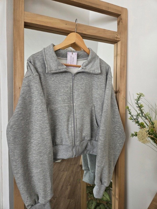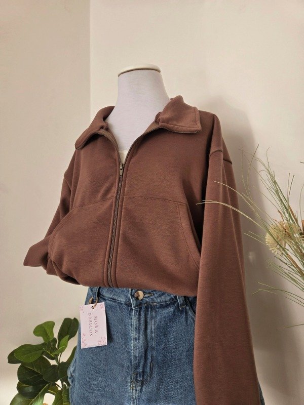 Campera de algodón frizado con bolsillos y ajuste en puños. Corte oversize.