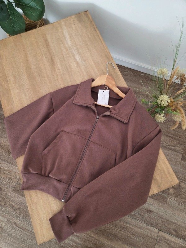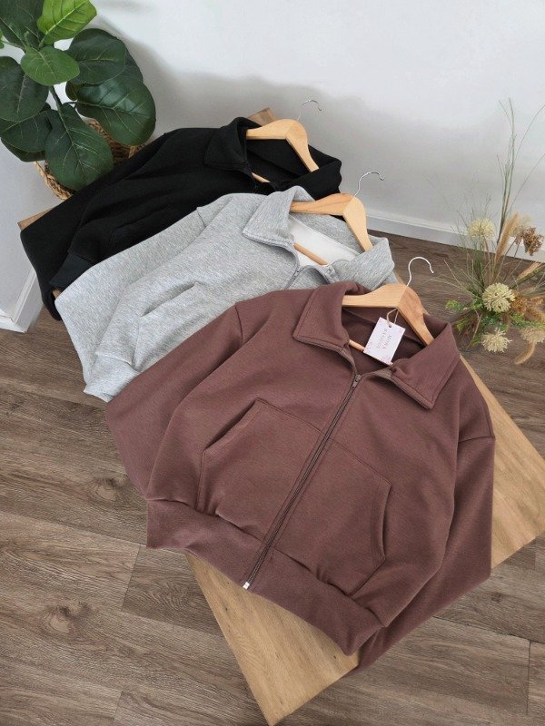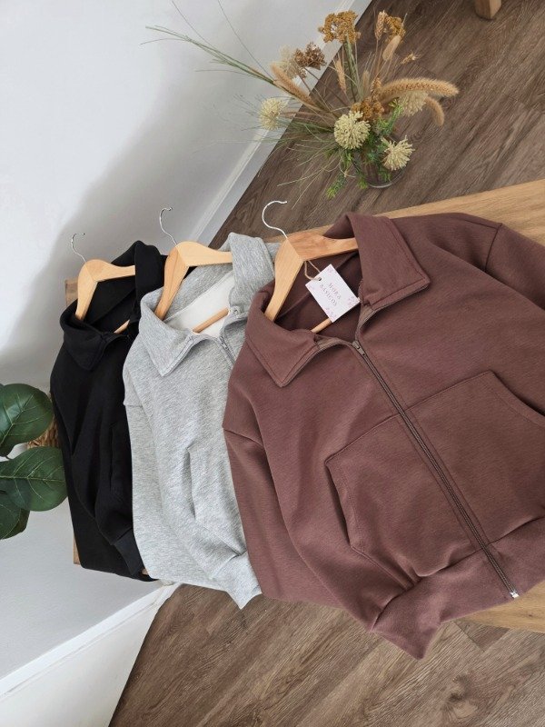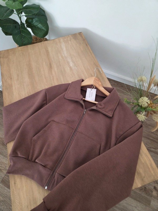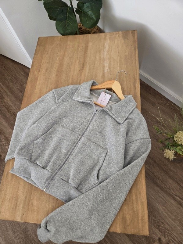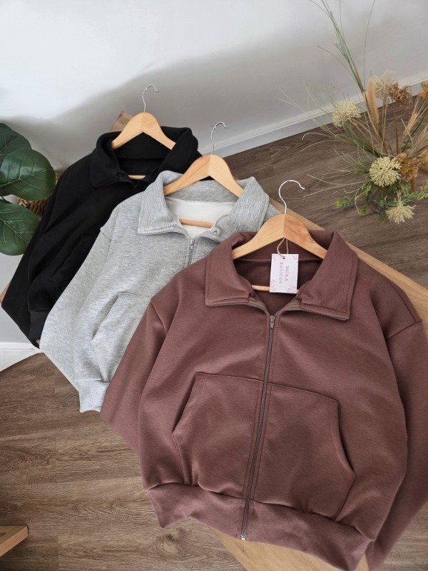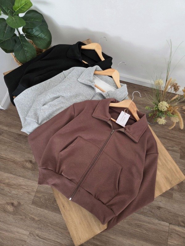 Campera de algodón frizado con bolsillos y ajuste en puños. Corte oversize.