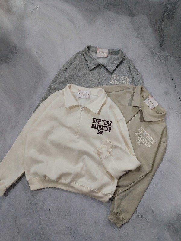Buzo oversize frisado con cuello chomba y cierre frontal funcional. Bordado en el frente y estampado en el dorso. Con ajuste en puños y cadera.