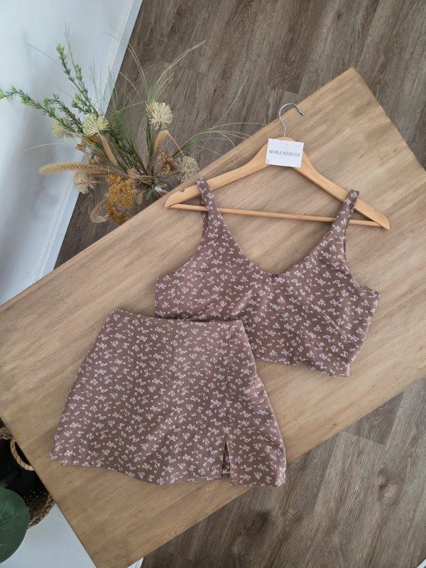 Conjunto de blusa y skort tiro alto con estampado floral. De fibrana.