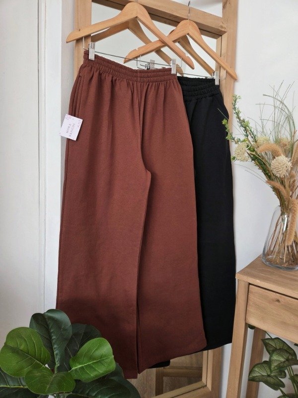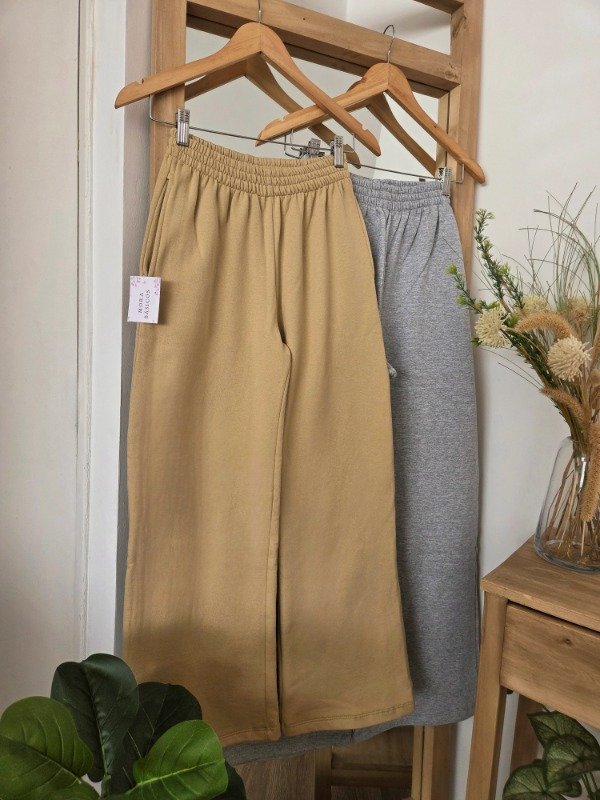 Pantalón palazzo tiro alto de algodón frizado. Con cintura elástica.