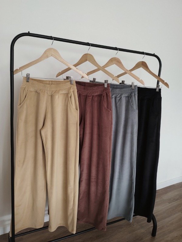 Pantalón palazzo tiro alto de plush. Con cintura elástica y caída amplia.