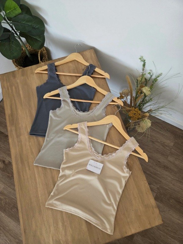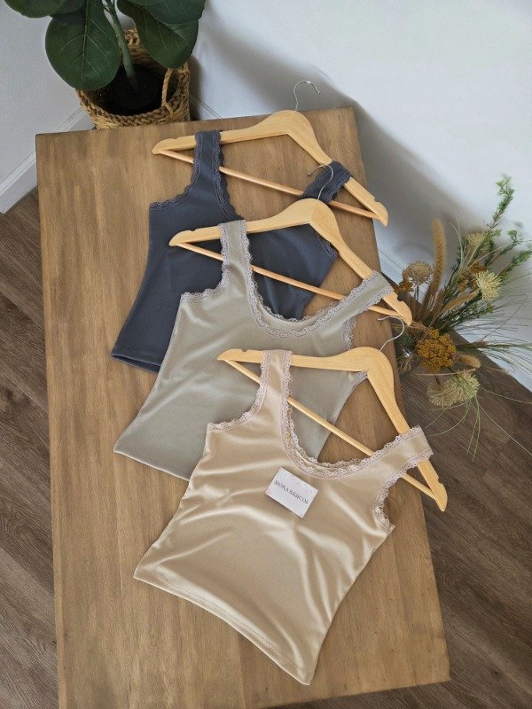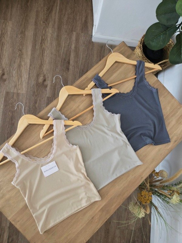 Musculosa de morley con cuello redondo y encaje.