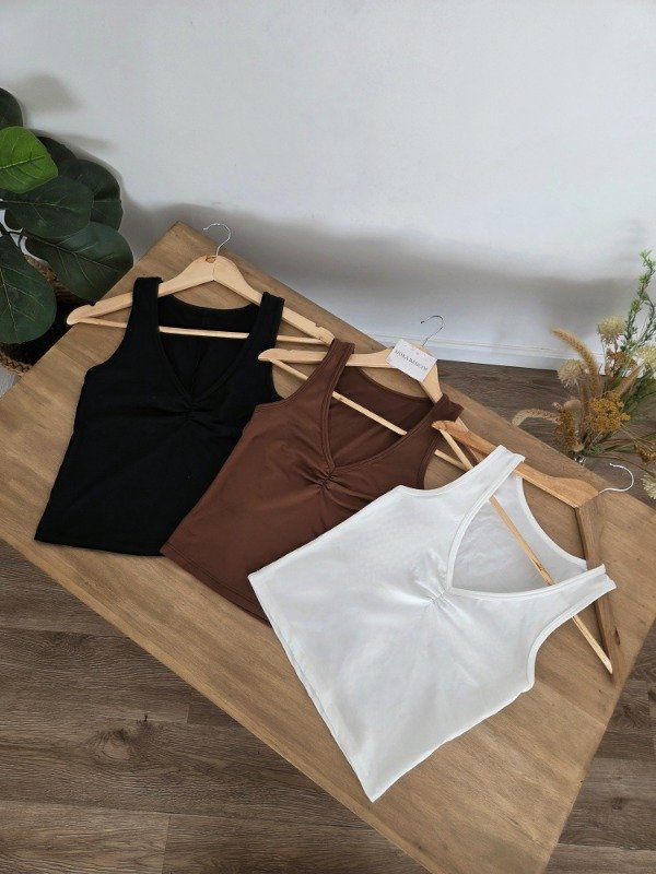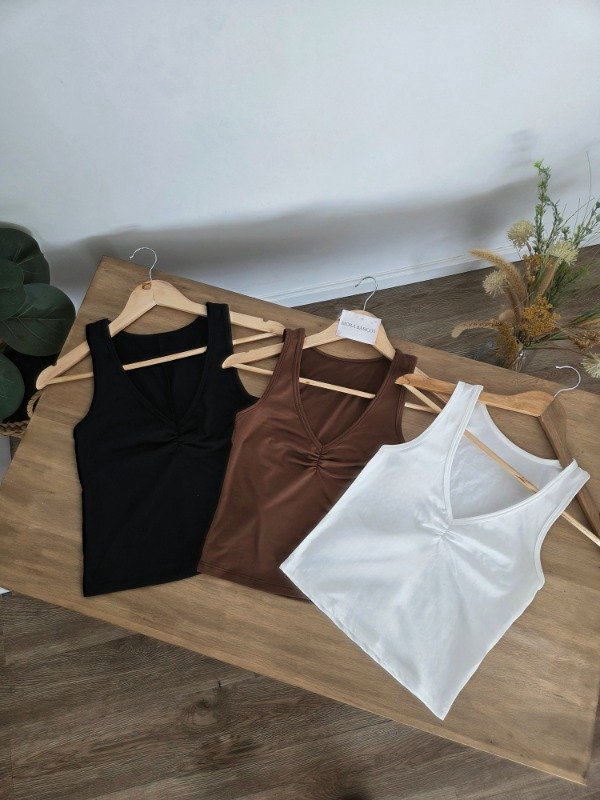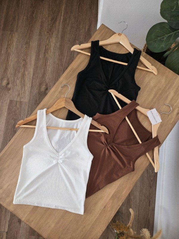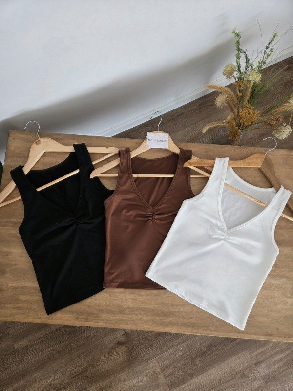 Musculosa de cuello V con frunce en el escote. De algodón modal.