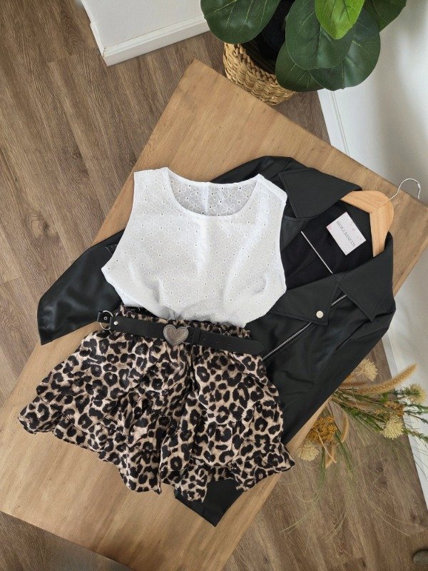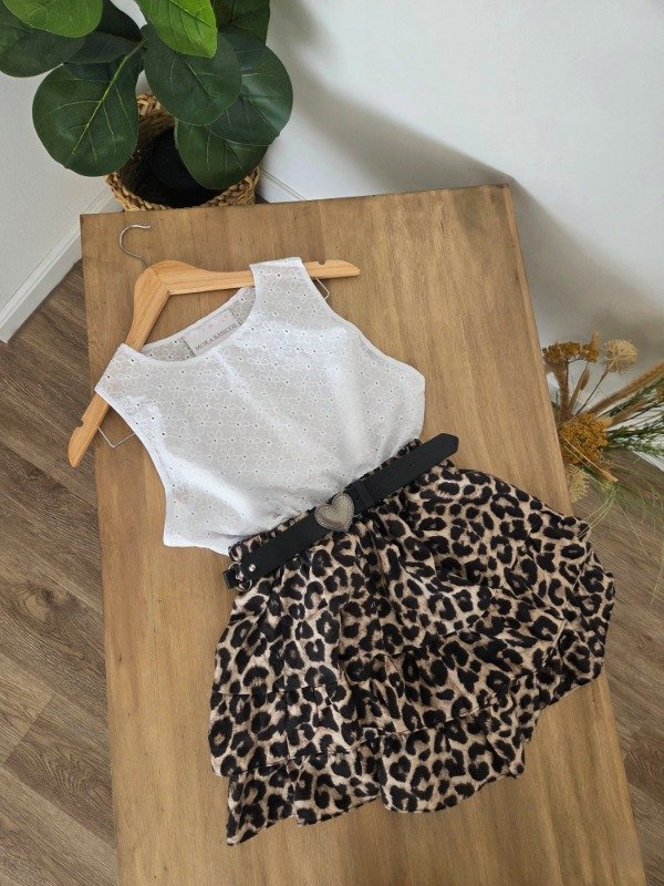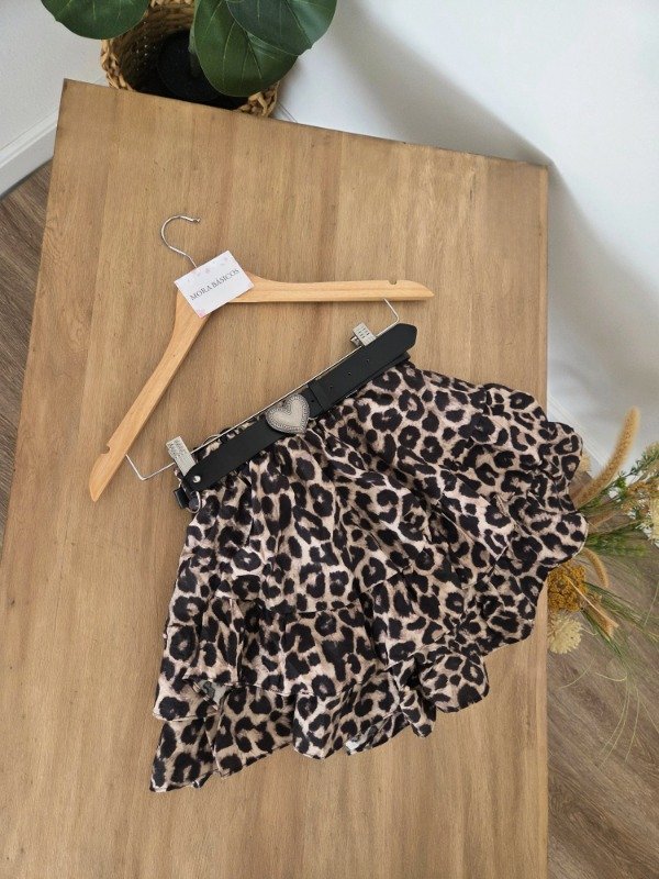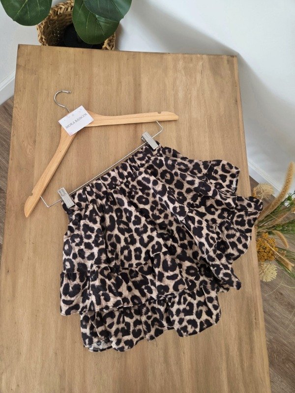 Short-pollera tiro alto de lino estampado. Ideal hasta talle 42.