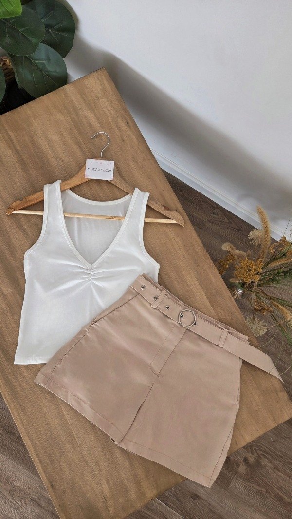 Short tiro alto de bengalina con cinto desmontable para ajustar. Ideal hasta talle 42.