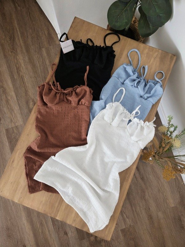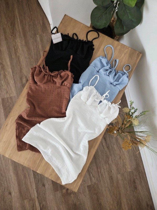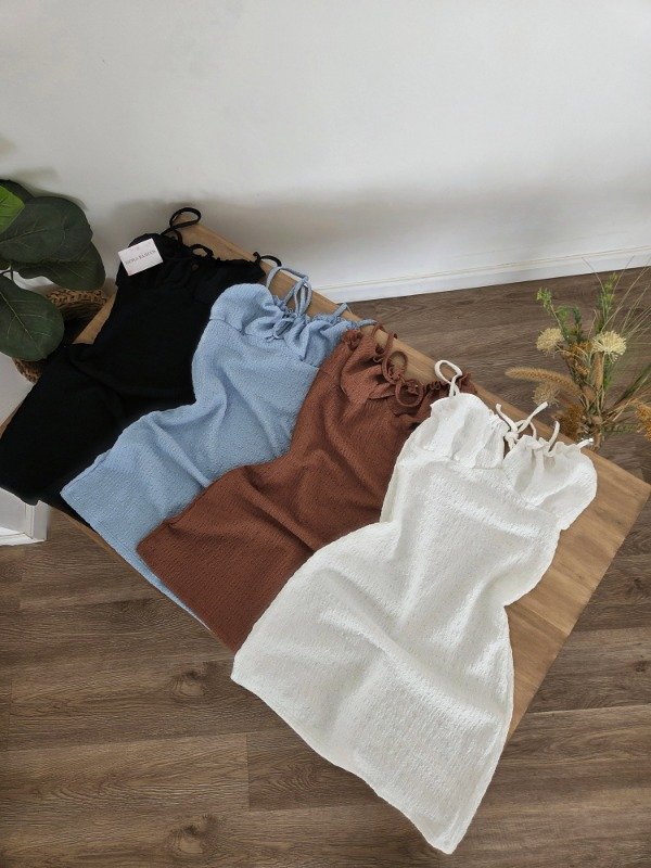 Vestido de breteles finos con lazos para atar en el escote. De hawaii.